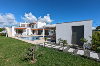 Located in a secure residence in Saint-François, Villa Roca invites you to enjoy a dream vacation in a truly idyllic setting. Just minutes from soft sandy beaches, this elegant and refined villa charms from the moment you arrive with its thoughtful design, blending comfort, well-being, and tranquility.
