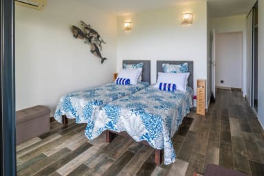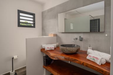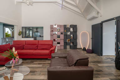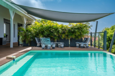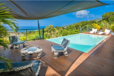 Facing the Saintes archipelago, Villa Maëthys is a bright contemporary home nestled in a lush 2,000 m² setting. It harmoniously blends modern architecture, top-of-the-line amenities, and breathtaking panoramic views. A perfect retreat to recharge and reconnect with nature in Guadeloupe, this villa will delight those seeking peace, comfort, and authenticity.