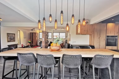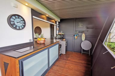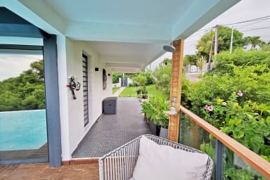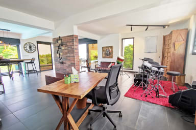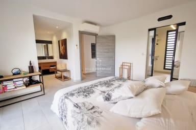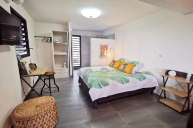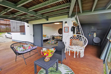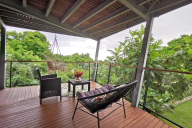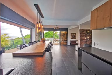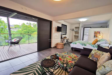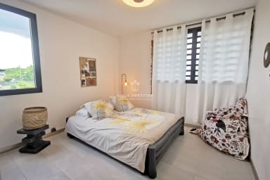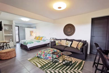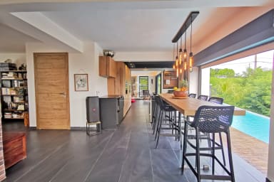 Located in a peaceful residential area facing the ocean, Villa Quiet boasts a spectacular view of the sea and the Saintes Islands. Recently renovated, this spacious holiday home designed for 8 to 10 guests combines comfort, originality, and a warm family atmosphere. With musical instruments, a library, children’s equipment, and an independent studio, everything is in place for an unforgettable stay just steps from Petit Havre and Les Salines beaches.