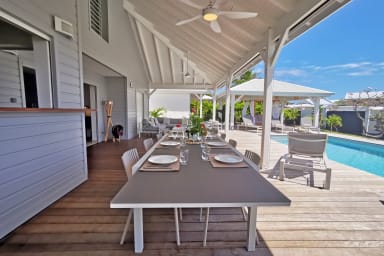 Fully renovated and tastefully decorated, Villa Neptune is an elegant holiday home nestled in a private and secure gated community with direct access to Manganao Beach. Spacious, comfortable, and perfectly equipped, it welcomes up to 10 guests in a peaceful setting just minutes from Crystal Beach and the Saint-François marina.