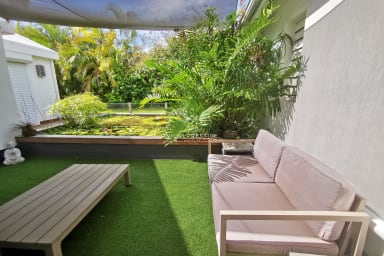 The landscaped garden is completely private and offers an infinity pool, a fully equipped gym, a ping-pong table, bicycles, a lounge area, sun loungers, a plancha grill, and a zen basin perfect for meditation. Every outdoor space has been designed with calm, comfort, and well-being in mind.