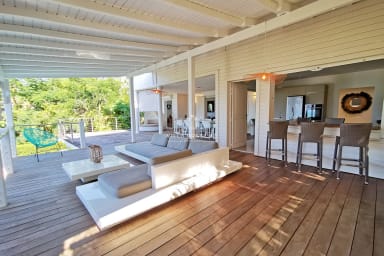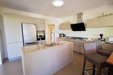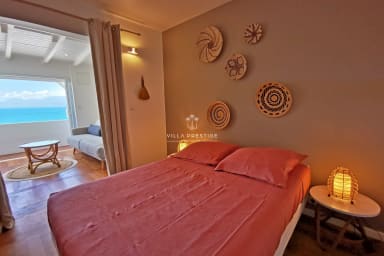 The four air-conditioned bedrooms are spread over two levels and all face the ocean. Three are located upstairs, and the fourth on the pool level. They offer generous space and privacy. Two bedrooms have their own ensuite bathroom, while the remaining two share a bathroom.