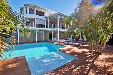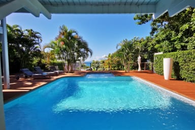 Villa White Pearl is a sleek and contemporary home spread over three levels, each offering a unique ocean view over Basse-Terre and Les Saintes. Located in a quiet residential neighborhood of Le Gosier, just 5 minutes from La Datcha beach and all amenities, this spacious and modern villa stands out for its thoughtful layout, expansive outdoor areas, mirror pool, and high-quality features.