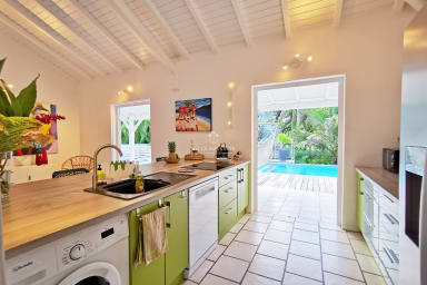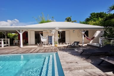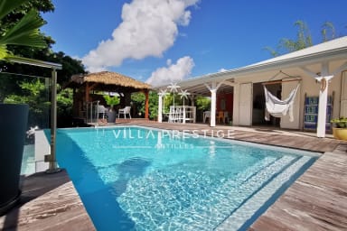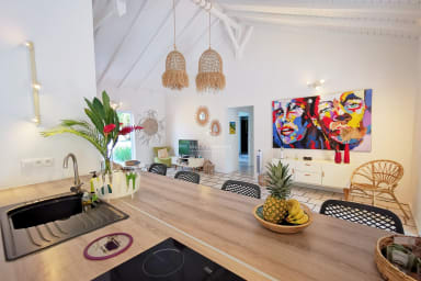 The lovely Villa Avocatier is located in the peaceful Vallée d’Or residence, just 3 minutes from the beaches and the lively center of Saint-François. This colorful and welcoming villa offers the perfect blend of modern comfort, tropical ambiance, and authentic charm — everything you need for an unforgettable Caribbean getaway.