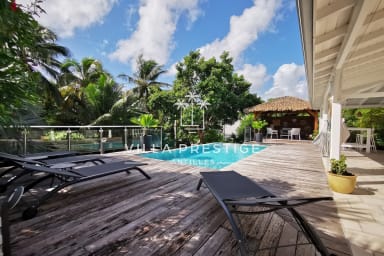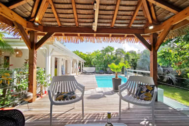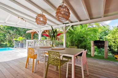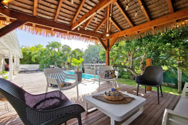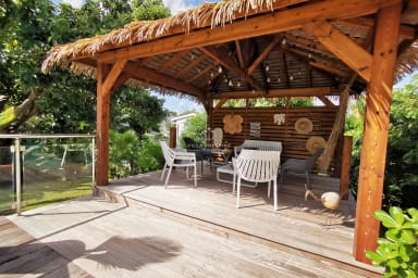 Lounge in the sun on the deck chairs or unwind in the shaded carbet with a good book or a ti-punch at sunset.