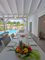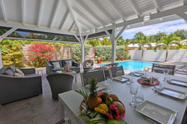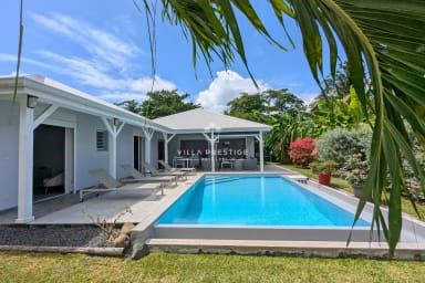 This new and charming villa, in a refined style, with swimming pool in a flowered and entirely enclosed garden located in Saint-François.