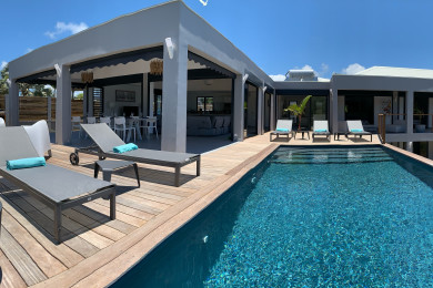 Perched on a cliffside with breathtaking ocean views, Villa Azurela impresses with its contemporary design, generous volumes, and spectacular outdoor spaces. Located in Sainte-Anne, it welcomes you in a peaceful setting, just steps from secluded beaches and the lively town center. Every detail has been carefully designed to combine comfort, elegance, and the art of outdoor living.