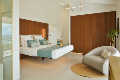 The four spacious bedrooms are spread across two levels. Each features a king-size bed and an en-suite bathroom. Two bedrooms offer sweeping ocean views, while the other two overlook the lush tropical garden, adding a refreshing exotic touch.