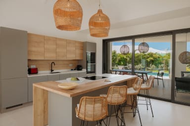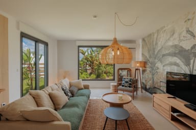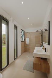 Located in a private and secure residence just a few meters from Manganao Beach and close to the center of Saint-François, this contemporary villa will charm you with its serene and cozy atmosphere. Perfect for a stay with family or friends, it features three independent suites, combining comfort and privacy.