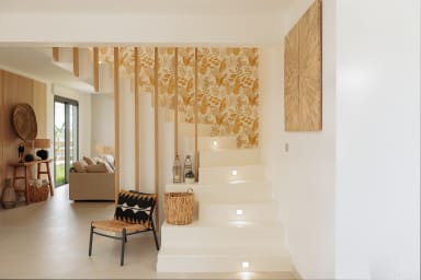 Villa Ivy opens onto a beautiful tiled terrace, bordered by lush tropical vegetation and featuring a private pool. The outdoor furniture invites you to relax, with sun loungers and a shaded dining area under the covered terrace. An outdoor shower and a barbecue are also available for you to fully enjoy sunny days.