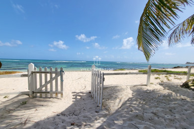 Villa Catalpas is a true beachfront home, where coconut trees line a natural sandy garden leading straight to the sea. Ideally located in Saint-François, just 5 minutes by car from the marina, the villa enjoys a prime setting between two beaches within walking distance and a grocery store right across the street. A rare retreat where tropical charm meets everyday comfort.