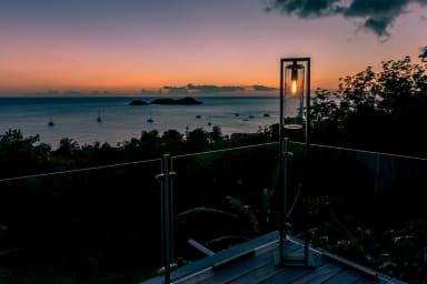 Sunset Bay is a high-end villa nestled in a lush green setting in Bouillante, offering a stunning view over the Pigeon Islets and the famous Cousteau Reserve. It combines modern design, comfort, and serenity in an exceptional natural environment. It is part of the estate that includes Villa Sunset and the Lodge.