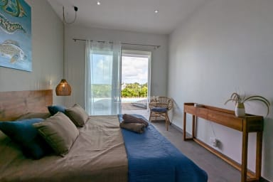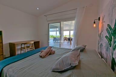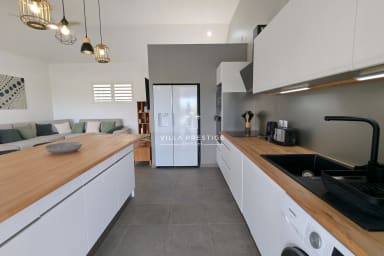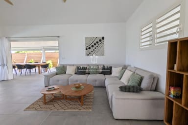 Located in a secure residence along the scenic tourist road of Saint-François, this newly built Creole-style villa is perfect for a family holiday. Bright, comfortable, and open to the outdoors, it offers a peaceful setting with a private pool and a partial sea view. From the residence, a pleasant path leads to the sea in about a ten-minute walk.