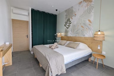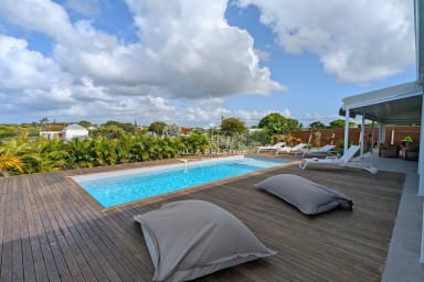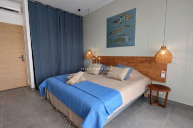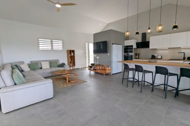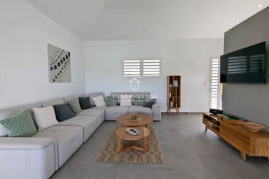 Located in a secure residence along the scenic tourist road of Saint-François, this newly built Creole-style villa is perfect for a family holiday. Bright, comfortable, and open to the outdoors, it offers a peaceful setting with a private pool and a partial sea view. From the residence, a pleasant path leads to the sea in about a ten-minute walk.