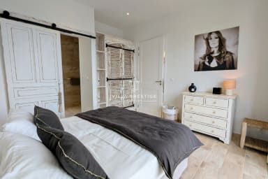 At the heart of the estate, the shared space captivates with its bright and refined atmosphere. It features a large living area opening onto the terrace, with a contemporary kitchen and a spacious dining table. On the wooden terrace, armchairs, a hanging chair, and lounge areas create a serene setting for relaxation.