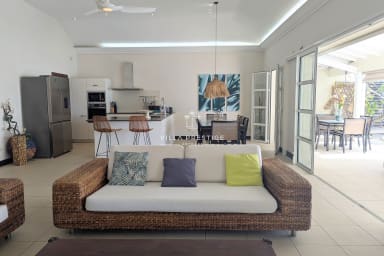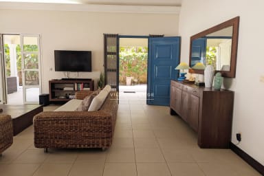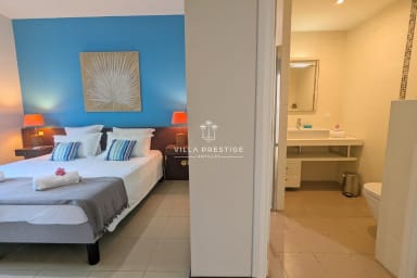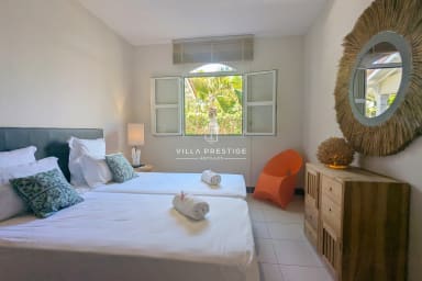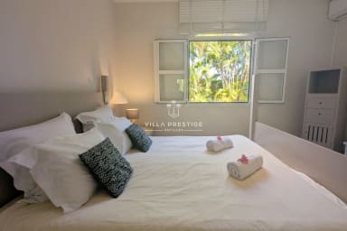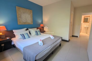 Ideally located on the waterfront between the international golf course and the turquoise lagoon of Saint-François, Villa Lagoon Bliss enjoys a truly exceptional setting, with direct access to the sea in the heart of a private and secure residence. Its refined atmosphere combines elegance and comfort, enhanced by breathtaking views over Marie-Galante. Designed to welcome everyone in the best conditions, the villa is fully accessible to persons with reduced mobility.