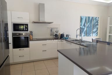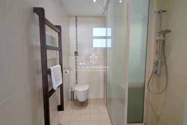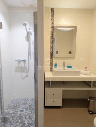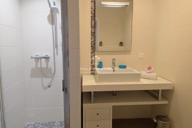 The villa features three air-conditioned bedrooms. One of them is fitted with a medical bed.