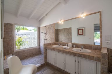 Villa Callisto is a contemporary home located in the prestigious gated community of Terres Basses, known as the most residential area in St. Martin. This stunning villa offers three bedrooms, each with its own en-suite bathroom, providing comfort and privacy for guests.