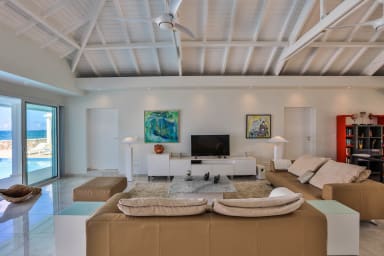 Villa L'Ecume des Jours boasts an ideal location on the stunning Plum Bay beach, where it merges with Baie Longue. This contemporary beachfront property offers a tranquil setting for your vacation.