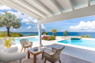 Villa Dreamin Blue, the most beautiful view of Saint Martin, which offers you a breathtaking panoramic view of the Caribbean Sea, sunrise and sunset.
