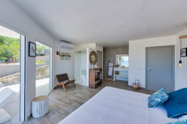 For larger groups or those seeking additional space, Villa Turquoze can be rented together with Villa Topaze, creating a combined total of seven bedrooms. This option is perfect for accommodating extended families or groups of friends traveling together.