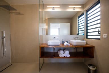 The villa boasts three bedrooms that open onto the pool terrace, allowing guests to wake up to magnificent vistas every morning. Each bedroom is equipped with its own en-suite bathroom, providing comfort and privacy for all guests. Additionally, on the lower level of Villa La Siesta, you'll find two more bedrooms, each with their own en-suite bathroom.