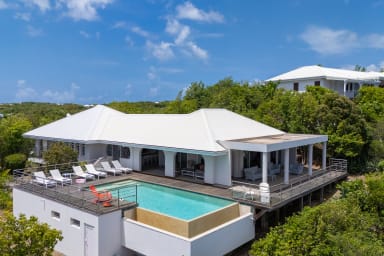 Villa Imagine is a stunning property with its five equally spacious bedrooms, each featuring its own ensuite bathroom, it offers both comfort and privacy for guests. The addition of an infinity pool further enhances the beauty of the villa, providing a luxurious and refreshing area to unwind and appreciate the surrounding scenery. The swimming pool is heated from October 15th to April 15th, outside this period the heating of the swimming pool is optional, at an additional cost of $350 per week.