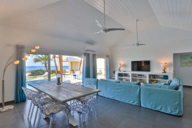 Villa Beach Secrets in Saint Martin, modern, breathtaking view of the Caribbean Sea and the island of Saba.