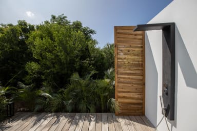 Surrounding the infinity pool, several wooden terraces on different levels provide endless opportunities : dining, lounging, or sunbathing. You can truly relax and enjoy the tropical ambiance of the outdoor spaces.