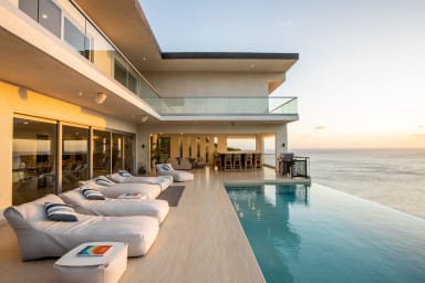 The outdoor seating area with its comfortable sofa is the perfect place to relax. You can also entertain your guests by cooking in the well-equipped outdoor kitchen while they sip a delicious cocktail at the outdoor bar overlooking the ocean.