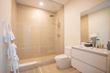 Villa Numa has six elegant bedrooms, all with exceptional sea views and their own luxurious bathroom. Located on the ground level, four of the bedrooms are connected to the lobby by a beautiful hallway, while the fifth and the sixth bedrooms located on the second lower level are accessible by an external staircase.