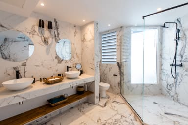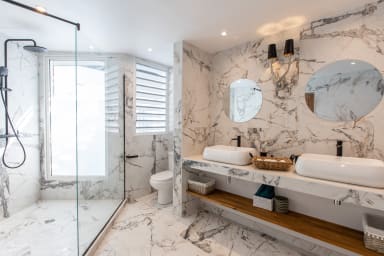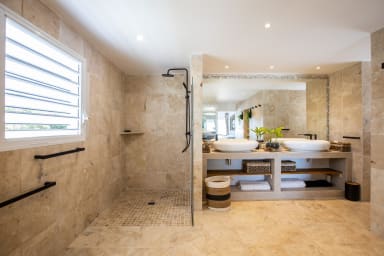 This villa has 6 large bedrooms with 6 en-suite bathrooms. On the main level, 3 bedrooms have access to the main pool and the main terrace.