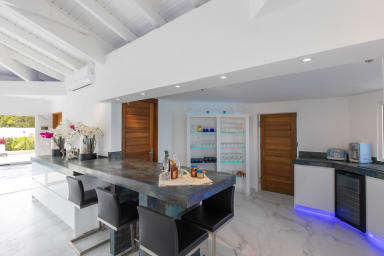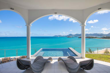 Villa Infinity Blue, in Saint Martin, a breathtaking view of shades of blue of the ocean and the neighboring islands. Also enjoy its unique and direct private access to the beach of Baie Rouge.