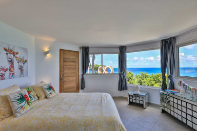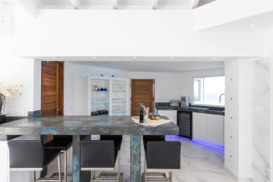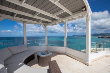 Villa Infinity Blue, in Saint Martin, a breathtaking view of shades of blue of the ocean and the neighboring islands. Also enjoy its unique and direct private access to the beach of Baie Rouge.