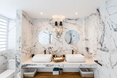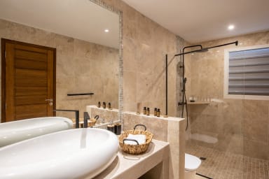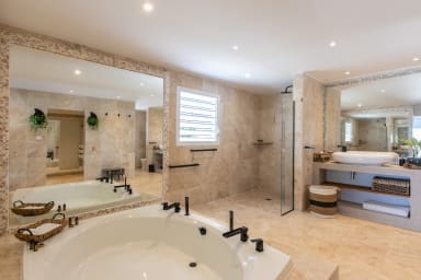 This villa has 6 large bedrooms with 6 en-suite bathrooms. On the main level, 3 bedrooms have access to the main pool and the main terrace.