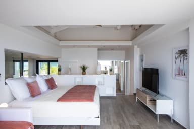 Inside the villa, you'll discover 4 beautifully decorated bedrooms, accessible from the interior space. Each bedroom is fully air-conditioned and has an en-suite bathroom, guaranteeing privacy and comfort. Three of them offer panoramic views of the pool and ocean. The fourth bedroom overlooks the garden and has its own private terrace where you can retreat to enjoy a moment of tranquility.