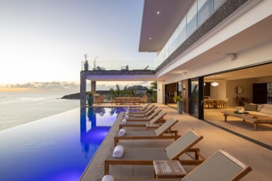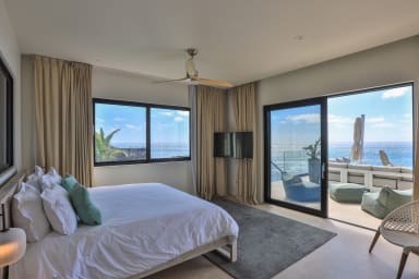 With 6 spacious bedrooms spread over 3 levels, each with its own en-suite bathroom, the villa creates a sense of intimacy and comfort. The Master bedroom offers a luxurious bath, while the others feature modern showers, all with panoramic ocean views, awakening an atmosphere of serenity.