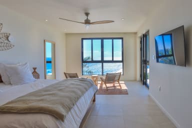 The villa's outdoor spaces are a testament to tropical luxury. Step onto the expansive terrace, and you'll find a mesmerizing pool that appears to blend seamlessly with the Caribbean Sea beyond. Ample lounging areas, including a covered al fresco dining space, invite you to soak up the sun, savor delicious meals, and relish in the island's natural beauty.