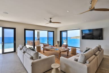 Upon crossing the threshold, you'll find yourself enveloped in spaciousness and luminosity. The villa's open-concept design provides panoramic views of the azure Caribbean waters through expansive windows. Subdued yet tasteful interior décor, featuring neutral hues and top-tier furnishings, complements the villa's contemporary aesthetic.