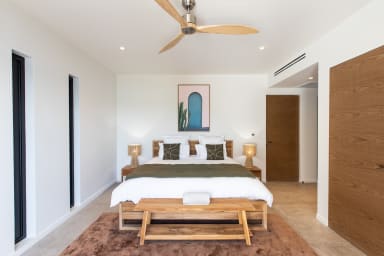 Upon crossing the threshold, you'll find yourself enveloped in spaciousness and luminosity. The villa's open-concept design provides panoramic views of the azure Caribbean waters through expansive windows. Subdued yet tasteful interior décor, featuring neutral hues and top-tier furnishings, complements the villa's contemporary aesthetic.