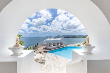 Located on Baie Rouge Beach, Villa L'Oasis on St. Martin is a one-of-a-kind masterpiece, seamlessly blending the captivating allure of Moroccan design with the timeless elegance of Greek architecture.