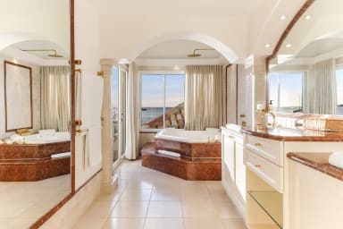 The villa, fully air-conditioned, boasts four impeccably designed bedrooms, each with a breathtaking view of the turquoise waters of the Caribbean Sea and the Rocher Créole. The master bedroom is located on the first floor, accessible from inside the villa. Each bedroom has an en-suite bathroom, one with an outdoor shower and three with a bathtub. The architectural excellence of Villa Petite Plage 4 is evident in its seamless integration with the natural environment, allowing guests to enjoy the beauty of Saint-Martin in the comfort of their own haven..