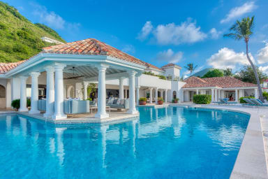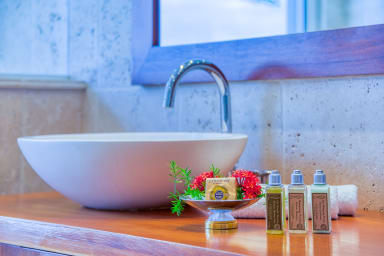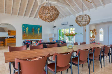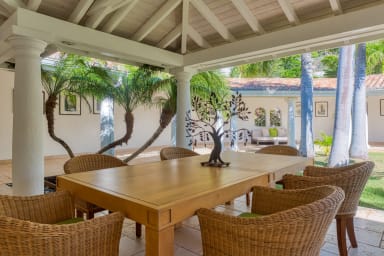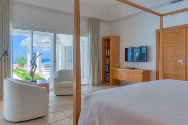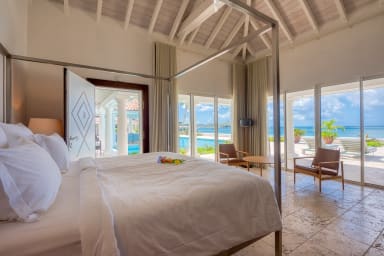 Whether contemplating the turquoise waters of the Caribbean from the comfort of your bed or enjoying the gentle breeze from a private terrace, the rooms offer an unrivalled experience of island luxury. Two of the bedrooms also have outdoor showers, and three of the bedrooms have a bathtub.The master bedroom is located upstairs, offering breathtaking views from its private terrace. While the sixth bedroom is a private studio located at the entrance to the property, providing an additional place of relaxation for guests or staff.