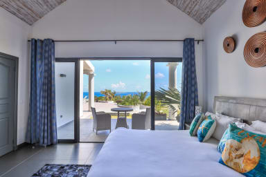 Each of the four bedrooms and the inviting living room opens onto the pool terrace, offering panoramic ocean views, complemented by the luxury of outdoor showers, in some of the bathrooms. Guests have access to a captivating infinity pool, a well-appointed kitchen, a poolside barbecue area, and a comfortably furnished living room equipped with a Bose sound system and TV.