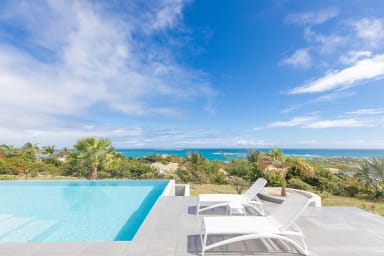Nestled high above Orient Bay in Saint-Martin, Villa Monte Verde is a symbol of luxury and tranquility. This sumptuous 4-bedroom villa offers a sublime interlude for those seeking an exclusive escape amidst the splendor of the Caribbean. Situated on a hillside, the villa offers panoramic views of the azure waters stretching as far as the eye can see.