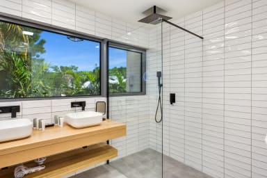 Upon entering this opulent sanctuary, you are greeted by five luxurious bedrooms, each offering a private oasis. The bedrooms are thoughtfully designed with amenities such as private bathrooms, outdoor shower, air conditioning, smart TVs, king-size beds, and secure safes.