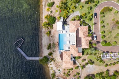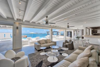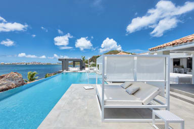 Villa Mirabelle is a stunning waterfront property situated on top of a hill, offering breathtaking views of the Simpson Bay lagoon in St Martin. This gorgeous villa is nestled in the midst of a tropical garden and boasts its own private beach.