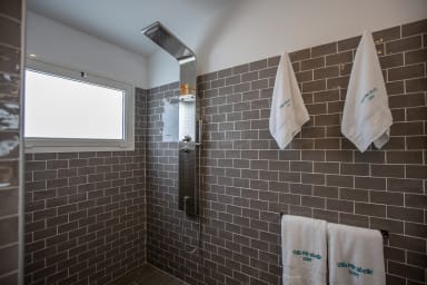 Villa Mirabelle features four bedrooms that offer captivating views of the lagoon. Each bedroom is furnished with a king-size bed, a dressing area, and an en-suite bathroom, ensuring privacy and luxury for every guest. The fifth bedroom offers a garden view and its own en-suite bathroom.
