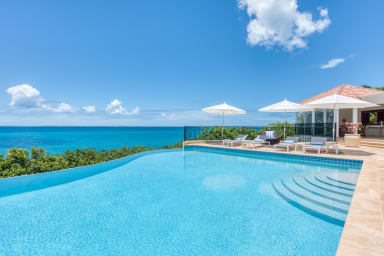 This stunning 5-bedroom cliffside villa is a masterpiece of architectural design, offering unparalleled views of the Caribbean Sea and the neighboring island of Anguilla.