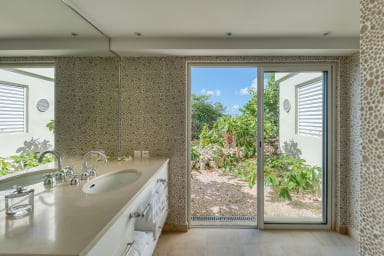 Villa La Dacha's outdoor spaces are a true highlight, showcasing the beauty of the Caribbean landscape. The expansive terrace, featuring a pristine infinity pool, is an ideal spot for relaxation and taking in the awe-inspiring sunsets. Guests can also indulge in al fresco dining with a spacious outdoor dining area, perfect for enjoying meals under the stars.